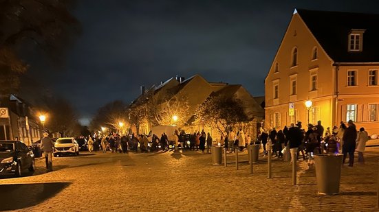Das Fest des heiligen St. Martin feierte unsere Campus-Kita in diesem Jahr wieder gemeinsam mit der Heilig-Geist-Kirche. Das Martinsfest mit Laternenumzug begann in der Kirche. Nach einem Laternenumzug über den Marktplatz teilten wir Martinshörnchen am Feuer. Wir sangen gemeinsam Lieder und gingen zu Ehren von St. Martin mit unseren Laternen durch den Abend.