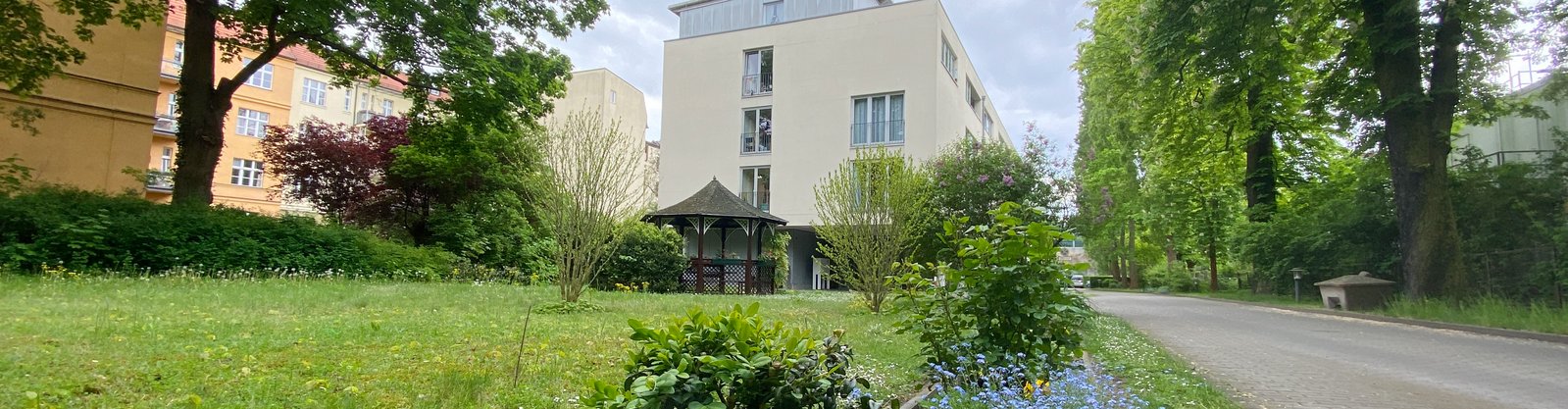 Mitten in der Brandenburger Vorstadt, in fußläufiger Entfernung zu Potsdams Innenstadt, finden Sie die Seniorenpflege am Charlottenhof. Der Park Sanssouci ist nur ein Steinwurf entfernt. Der Eingang zum Schloss Charlottenhof liegt direkt gegenüber unserer Haustür und lädt das ganze Jahr zu stimmungsvollen Spaziergängen ein. Der Bus in die Innenstadt hält direkt vor unserer Haustür. Einkaufsmöglichkeiten mit verschiedenen Geschäften, einer Postfiliale sowie einer Apotheke sind ebenfalls fußläufig erreichbar.