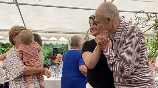 Das Wetter spielte mit, so dass alle den Tag draußen genießen konnten. Zur guten Stimmung trug aber auch das abwechslungsreiche Programm mit viel Musik bei. Sänger "Shelvis" unterhielt alle mit seinen Elvis-Imitationen und Schlagern und lud einige Bewohner*innen, Mitarbeitende und Gäste zum Tanzen ein.