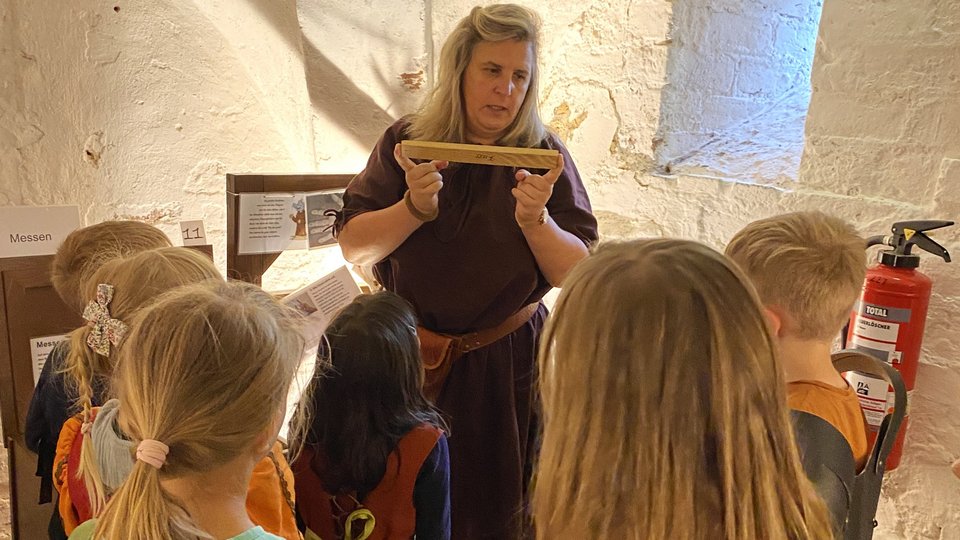 Beim Weben, Messen, Kochen, Bauen, Sticken und Wiegen konnten die Vorschulkinder der Evangelischen Kita St. Nikolai verschiedene Berufe kennenlernen und dank passender Kleidung ins Mittelalter eintauchen. Als kleine Stadtwächter, Wäscherinnnen oder Kaufleute besuchten sie die Mitmachstationen des Museums im Mönchenkloster in Jüterbog. Wie und was aßen die Menschen im Mitttelalter? Wie lebten sie? Wie sahen Toiletten im Mittelalter aus? Wie baut man einen Torbogen? All diese Fragen konnten während der interaktiven Führung beantwortet werden.