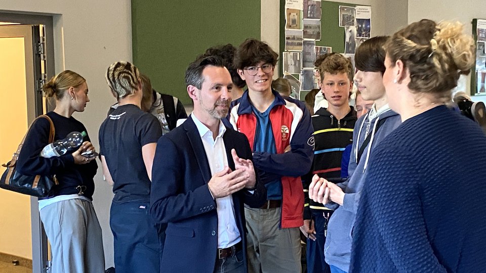 Was sind die Themen, die Jugendliche in Potsdam bewegen? Was sind ihre Fragen, worüber sorgen sie sich? Um das zu erfahren, besuchen die Oberbürgermeisterkandidat*innen im Wahlkampf die Potsdamer Schulen, darunter auch das Evangelische Gymnasium Hermannswerder.