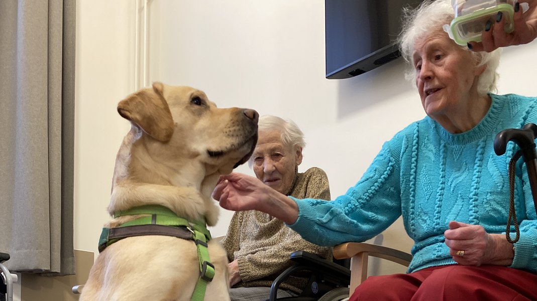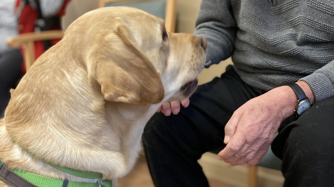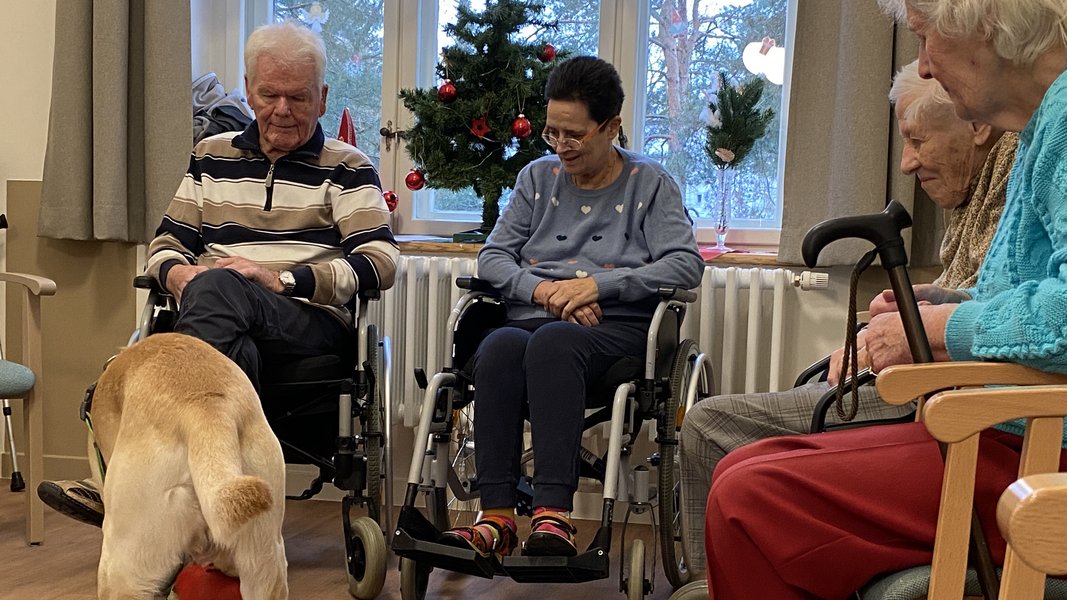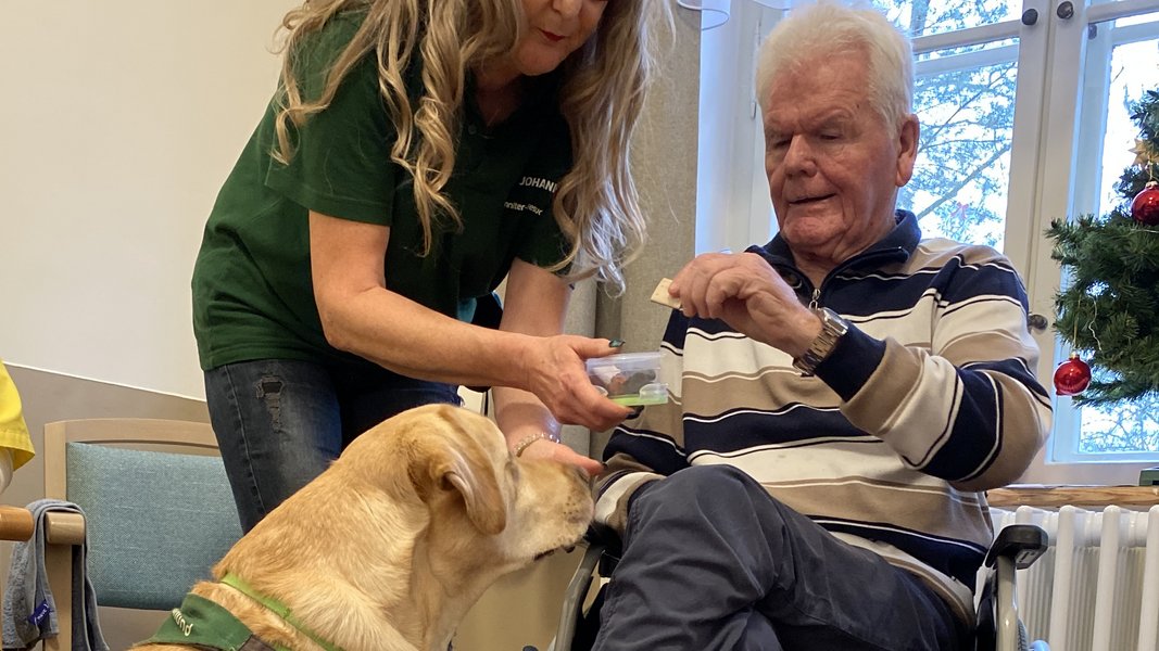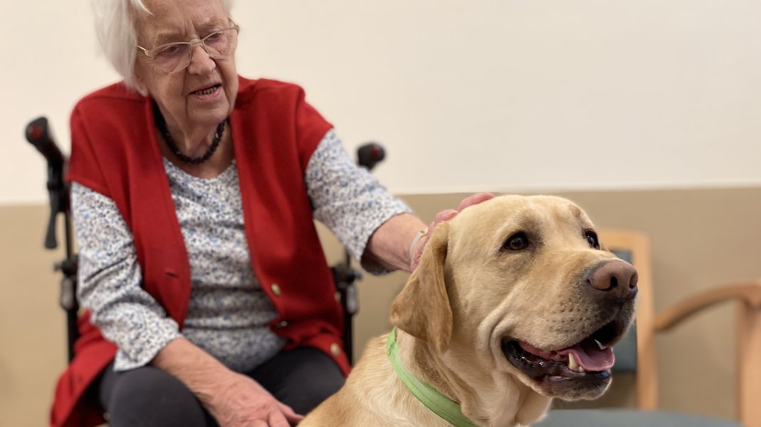 Zweimal im Monat hat unsere Seniorenpflege auf Hermannswerder Besuch von Hund Max. Gemeinsam mit seiner Besitzerin Gabi verbringt er Zeit mit einigen unserer Bewohner*innen. Dieses Zusammensein wird von allen sehr geschätzt, da sie eine Vielzahl von positiven Momenten mit sich bringt.