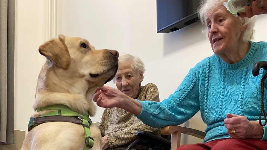 Die regelmäßigen Besuche von Max sind ein wichtiger Teil unseres Angebots und bringen unseren Bewohner*innen viel Freude. Sie bieten eine tolle Gelegenheit, die positive Wirkung von Tieren auf das Wohlbefinden und die Stimmung zu erfahren und die emotionale Verbindung zu stärken.