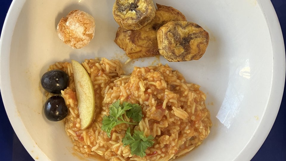 Ein besonderes Highlight war das gemeinsame Kochen. Einige Kinder bereiteten zusammen mit unserer Köchin Ute eine nigerianische Spezialität zu: Shuku Shuku – kleine Kokosbällchen. Zum Mittagessen gab es ein nigerianisches Gericht: Jollof Rice – Reis mit würziger Tomatensoße und dazu Kochbananen. Beim gemeinsamen Mittagessen beteten wir zusammen und dachten dabei besonders an die Menschen in Nigeria. So wurde deutlich, dass der Weltgebetstag Menschen auf der ganzen Welt miteinander verbindet.