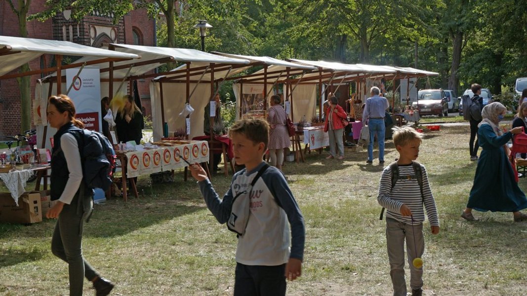 Kann eine Insel Türen öffnen? Sie kann! Am 19. September lud die Hoffbauer-Stiftung zum Inselfest nach Hermannswerder ein. Bei schönstem Spätsommerwetter öffneten das Evangelische Gymnasium, die Beruflichen Schulen Hermannswerder und die Fachhochschule Clara Hoffbauer ihre Türen für neugierige Blicke und Fragen. Coronabedingt verlagerten die Schulen ihr Programm größtenteils nach draußen auf Wiese und Schulhöfe. Open-Air fand auch der Gottesdienst statt. Das bunte Markttreiben mit schönen Dingen, Bastelaktionen und Leckereien wurde begleitet von einem Bühnenprogramm, das Ensembles und Solisten aus Hoffbauer-Einrichtungen gestalteten.