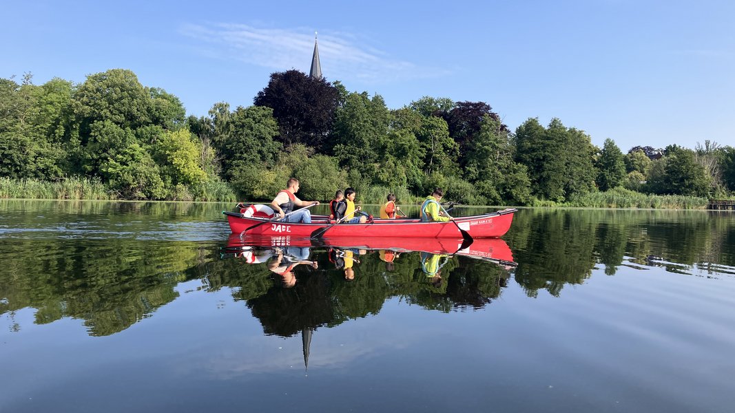 Am Evangelischen Gymnasium Hermannswerder findet auch in diesem Jahr wieder die Wasserwoche Hermannswerder statt. Vormittags können Grundschüler*innen von Klasse 3 bis 5 das Wasser erkunden: Im „Acqua Lab“ geht es um naturwissenschaftliche Experimente und Feldforschungen. Im „Lingua Lab" um die Sprachen Englisch, Französisch, Latein und Griechisch. Und im „Musalab” darum, sich künstlerisch, musikalisch und in Form von Theater mit dem Wasser auseinanderzusetzen. Die Anmeldung zu den Vormittags-Veranstaltungen für die Schulklassen 3 − 5 erfolgt über das Evangelische Gymnasium: gymnasium-hermannswerder@hoffbauer-bildung.de